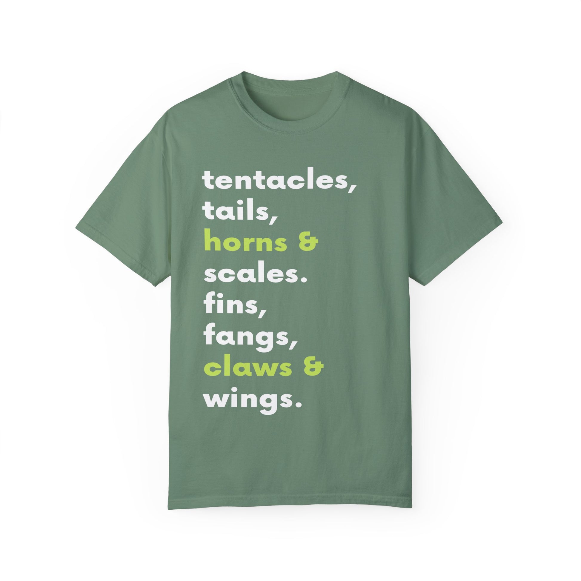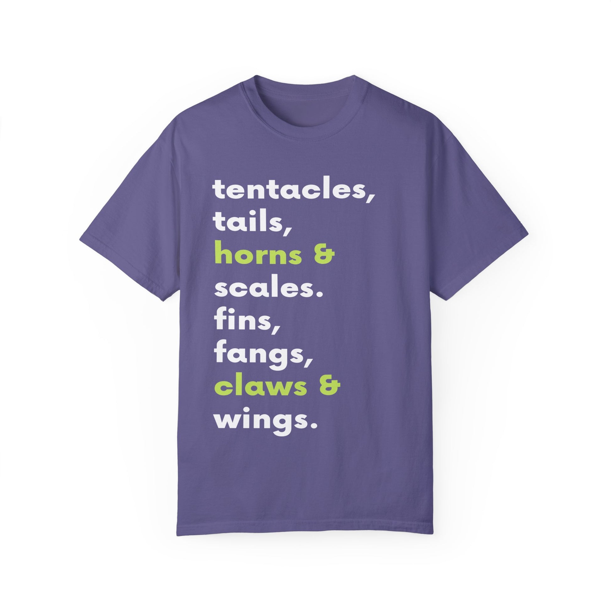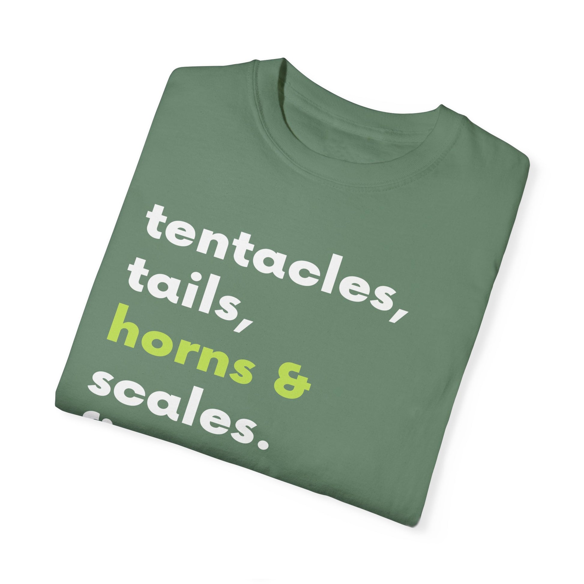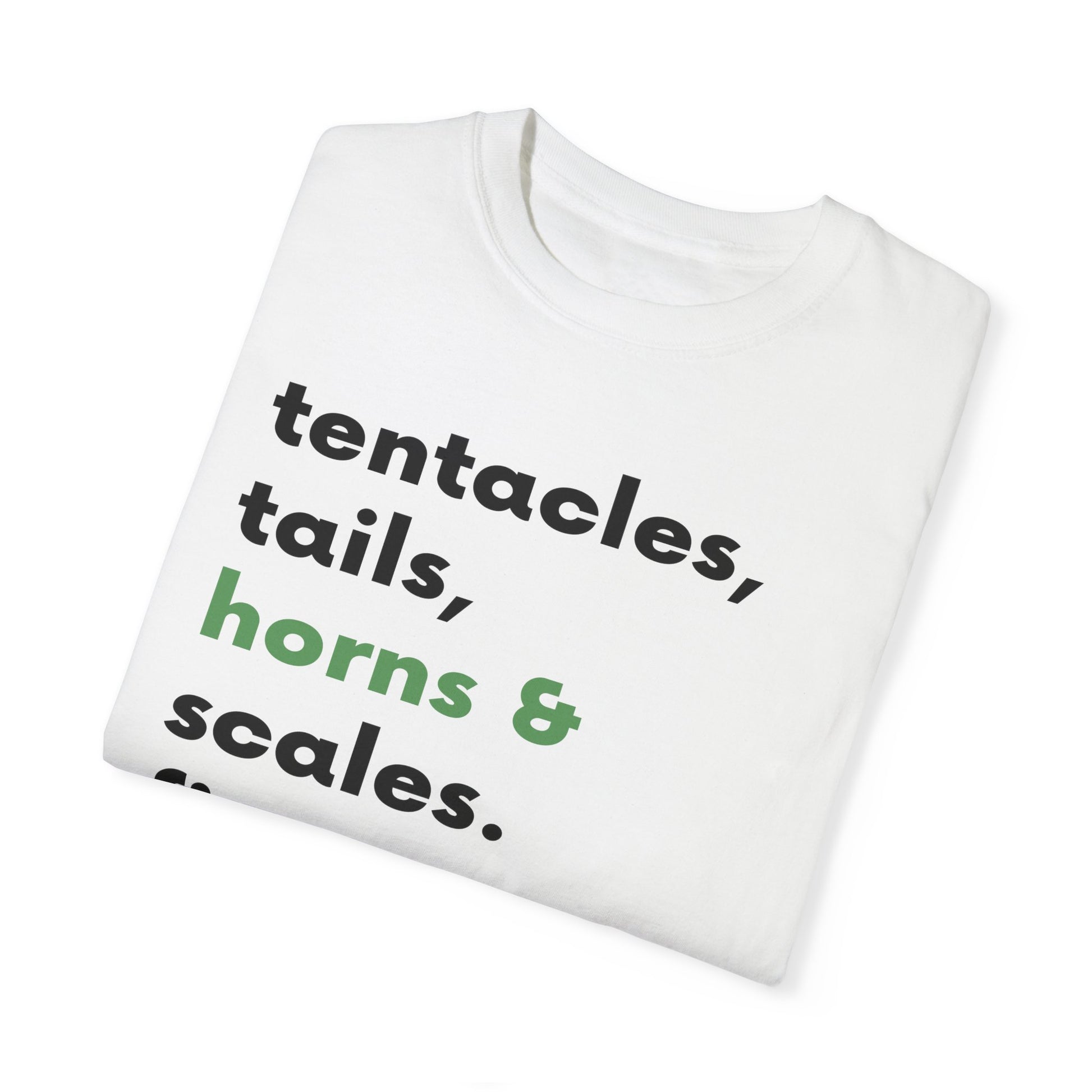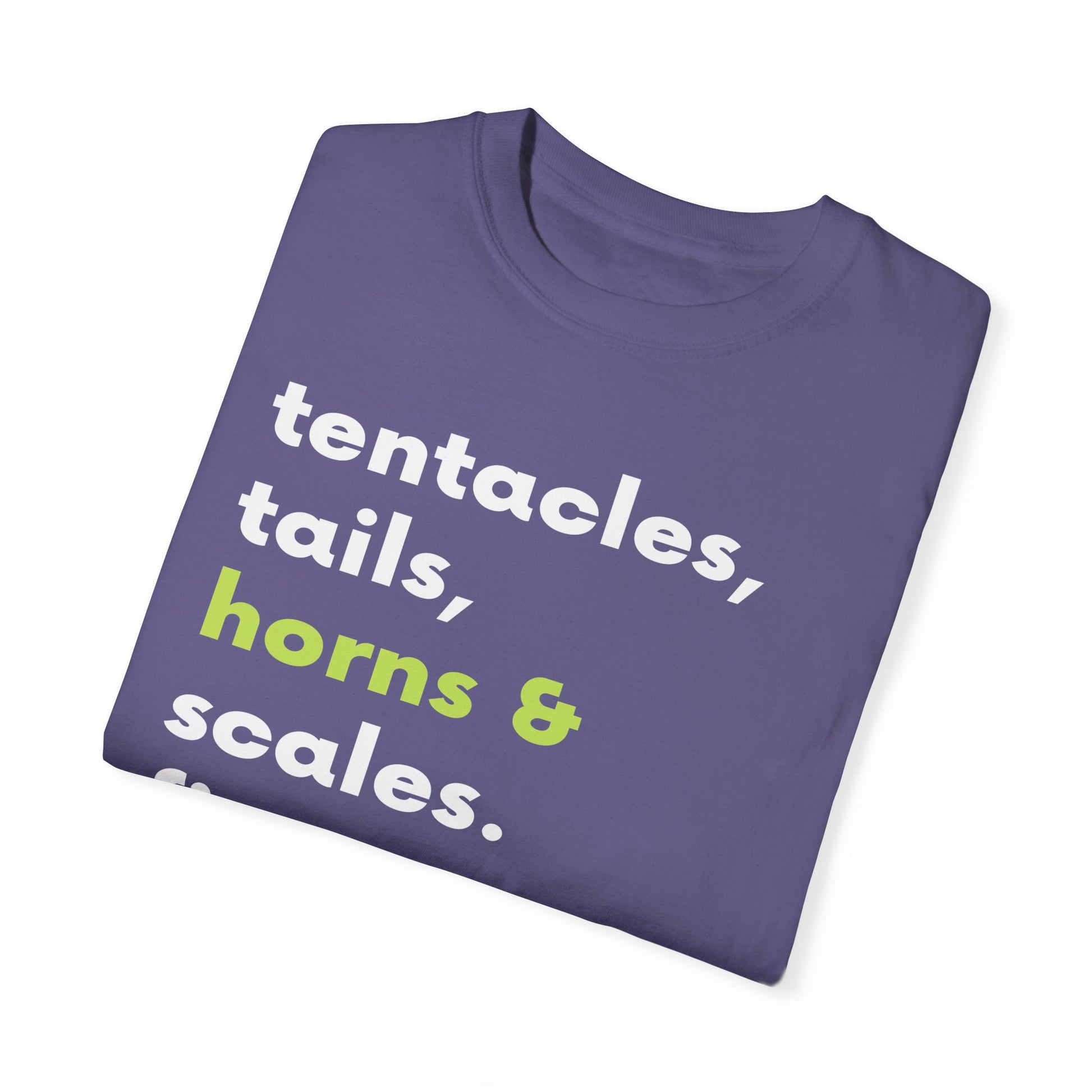 Tentacle, tails, horns, and scales.