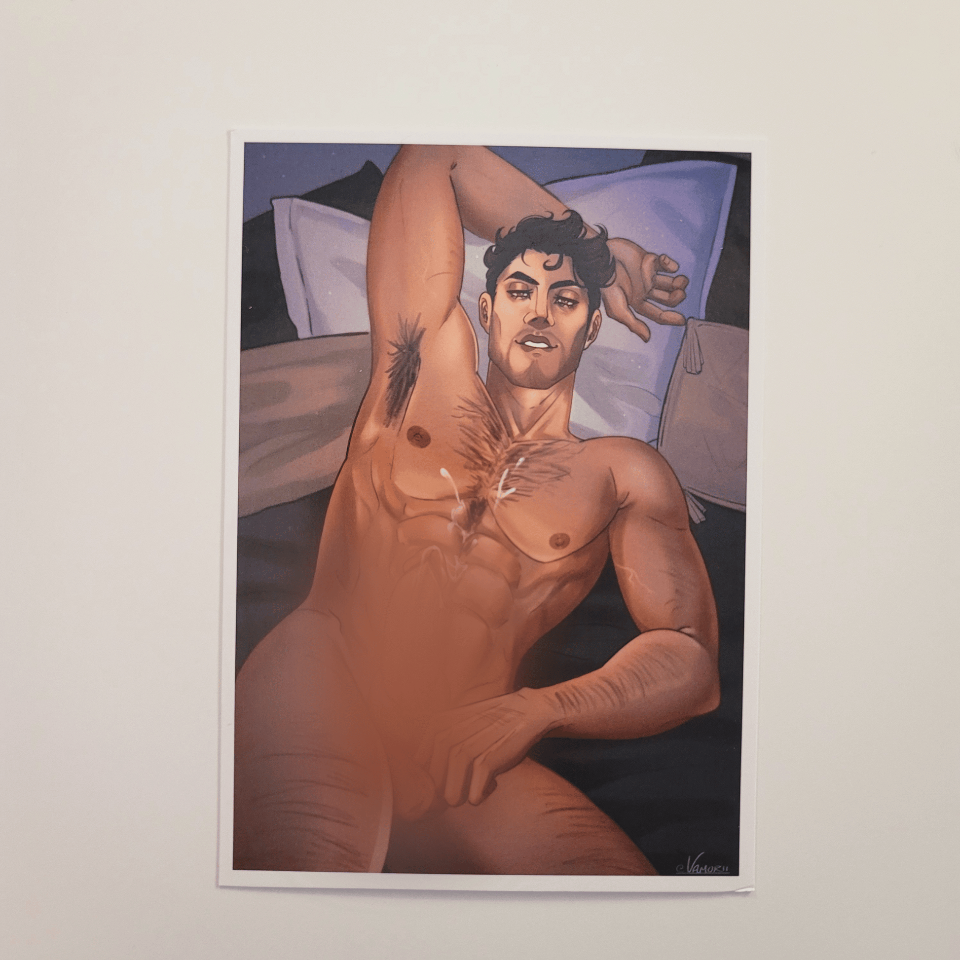 NSFW print of Lowell Hemming, created by @Vamorii_—character from C.M. Nascosta's Moon Blooded Breeding Clinic.