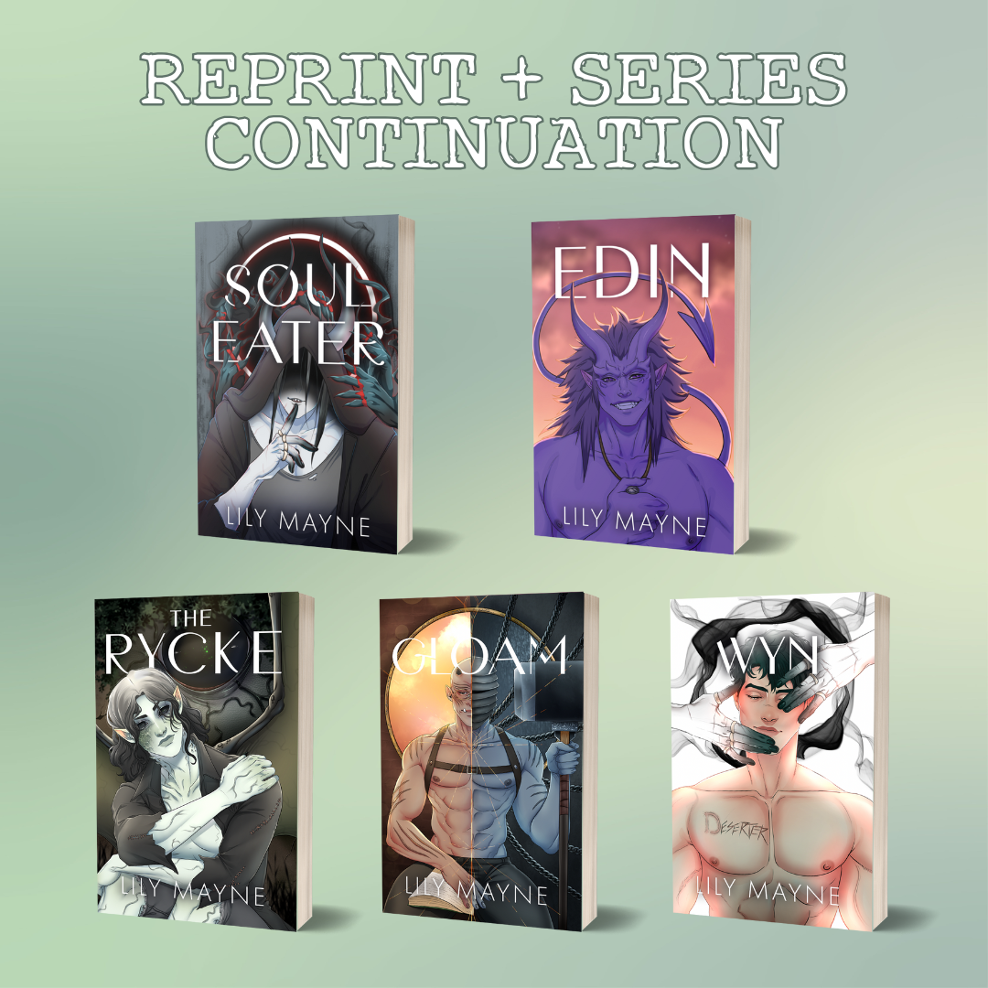 Reprint + Continuation will include: Soul Eater, Edin, The Rycke, Wyn, and Gloam. All five books will cost $185 USD + shipping.