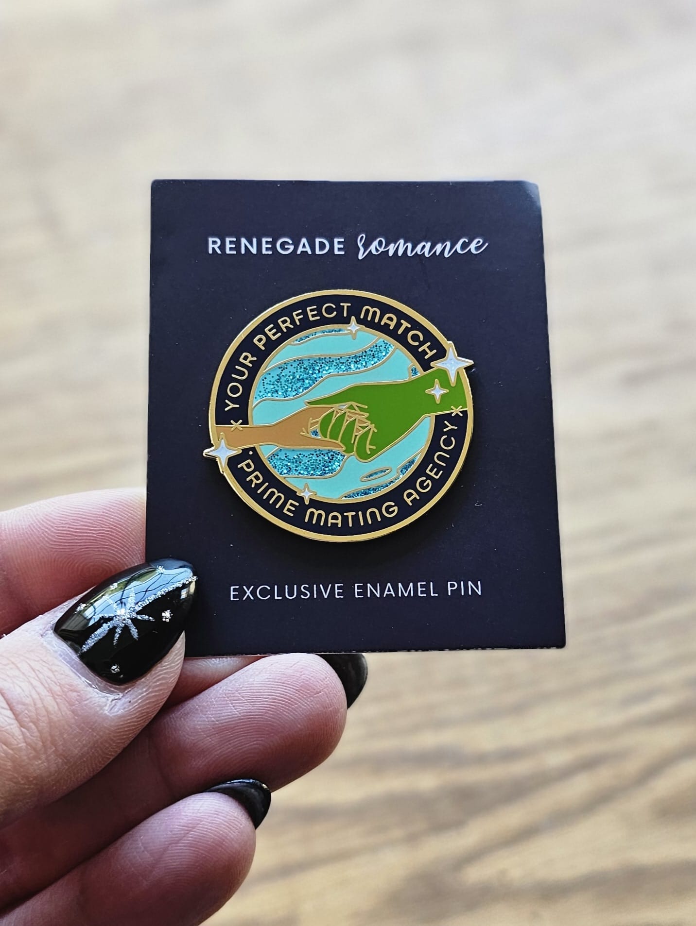 Prime Mating Agency enamel pin. Originally included in the Regine Abel box, December (2022)-January 2023.